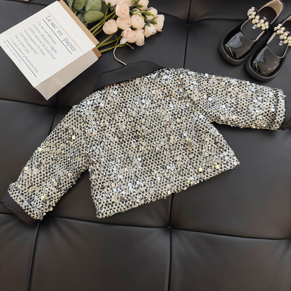 ✅ Conjunto Infantil Feminino Vestido Brilhos + Casaco Lantejoulas.