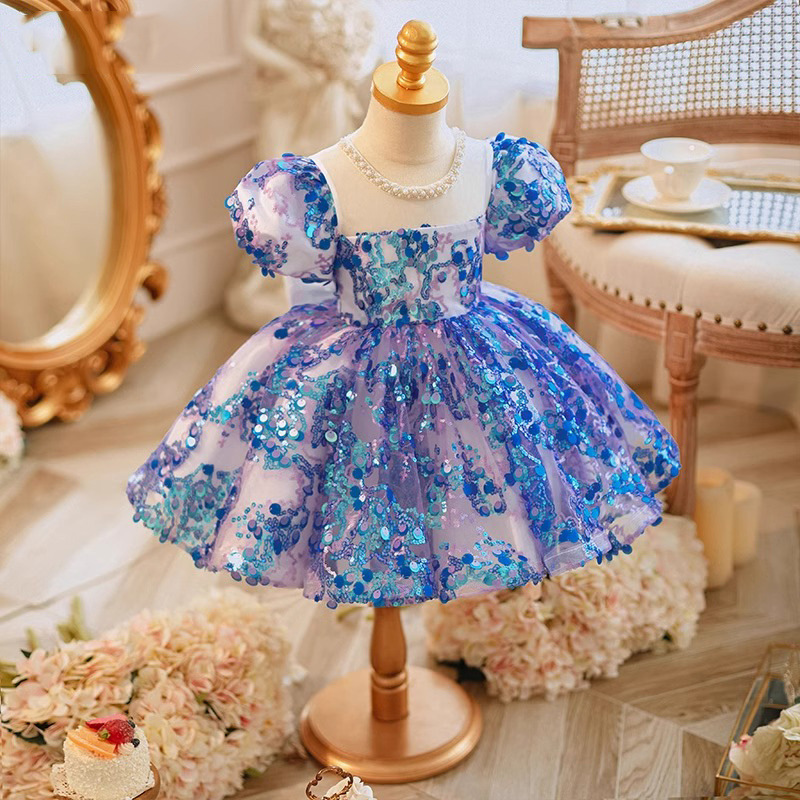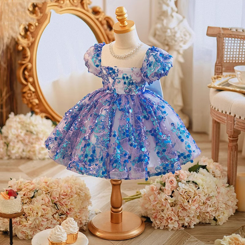 ✅Modelo: Vestido Infantil De Festa Azul Flores.